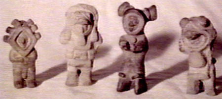 These photos depict figures found in Equador. Notice they appear to be wearing space suits. You can see a comparison photo with an Apollo astronaut.