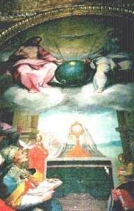 The above painting is by Bonaventura Salimbeni entitled "Glorification of the Eucharist", painted in 1600. Notice the Sputnik satellite device. It hangs in the church of San Lorenzo in San Pietro. It is considered by some to be a stylised representation of the Earth but I have included it here as it still looks interesting.