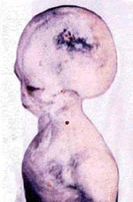 On October first of 2002, while vacationing in the Southern Chilean city of Concepcion, a group of family members found what appeared to be a small humanoid creature. The miniscule being measures about 7.2 centimeters long. It has a relatively large head, two arms with long fingers, and two legs. The discovery was first reported by "Mega News Service", which is the local news channel in the Santiago area.