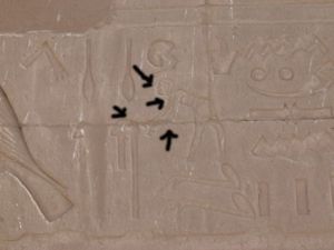 Here we see a hieroglyph of a hand which clearly has much longer fingers than a normal hand would have. Why would they go to such trouble to carve this hand. I think it is to say yoooo hoooo look at this hand it is not human. This is who we are!!!! It is like when you are a kid and you go by freshly put cement on the road, you instinctively want to put your hand or footprint in the cement. This is the same, it is a calling card. It is a signature. It is not a symbol representative of something else such as a word, or some other nonsense Egyptologists would have us believe.