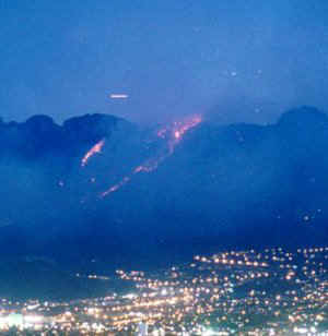 In this picture we see a cigar shaped ufo, it is over some mountains near a city. Throughout the years thousands of cigar shaped ufo's have been seen and documented. The sheer number indicates that this cigar shaped ufo is not a figment of a few people's imagination. This flying saucer of the cigar shape could be a transport craft more than a 3 or 4 manned craft, due to its larger size than most disc-shaped flying saucers.